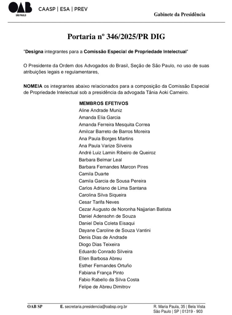 RAQUEL ALEXANDRA ROMANO – MEMBRO DA COMISSÃO ESPECIAL DE PROPRIEDADE INTELECTUAL OAB/SP – 2025/2027